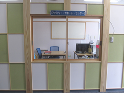けやきホール東側には子育て支援センター・ファミリー・サポート・センター事務所、絵本コーナー、喫茶コーナーがあります。
