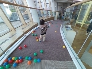 けやきホールの長いスロープにボールを転がして遊んだよ♪